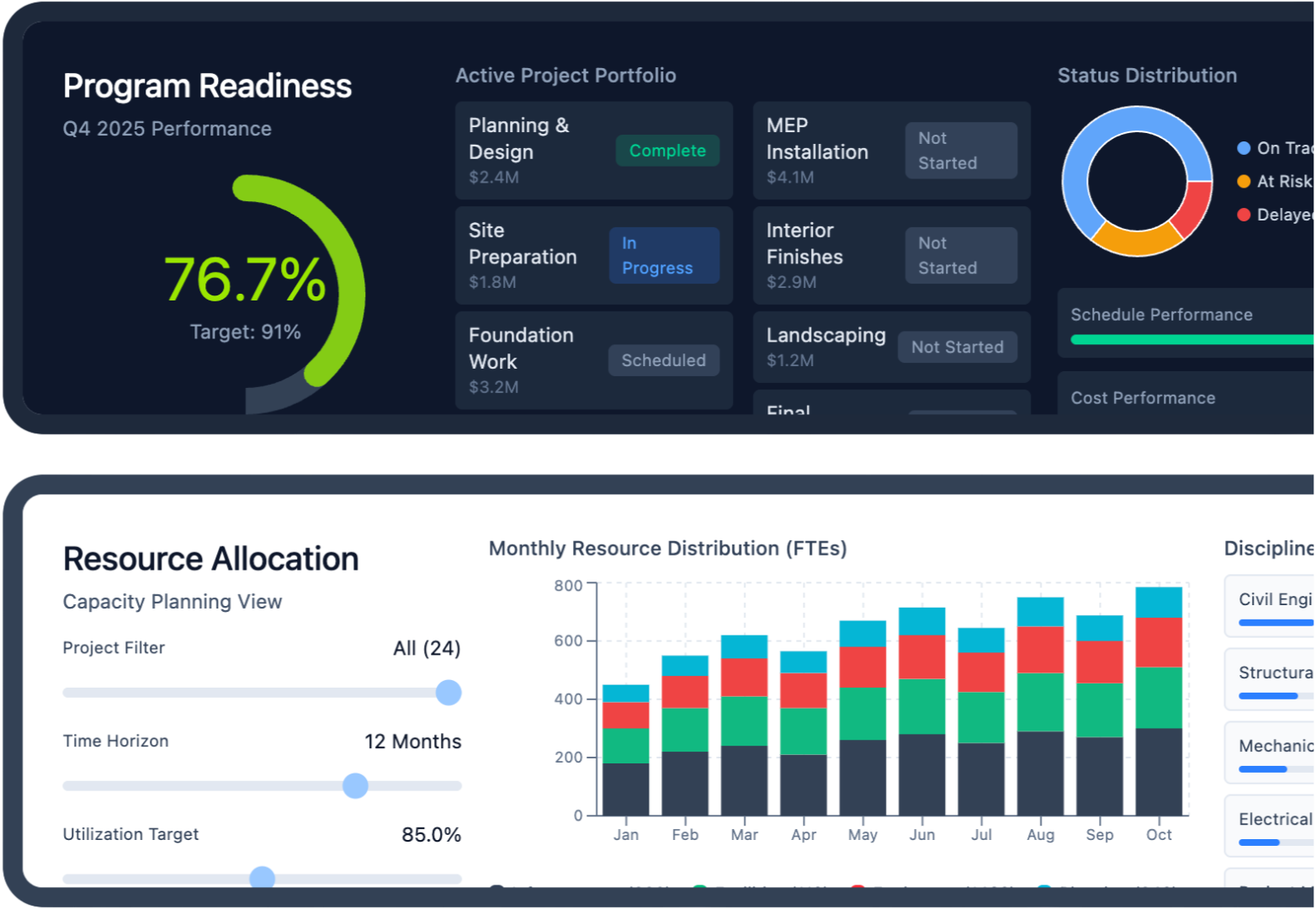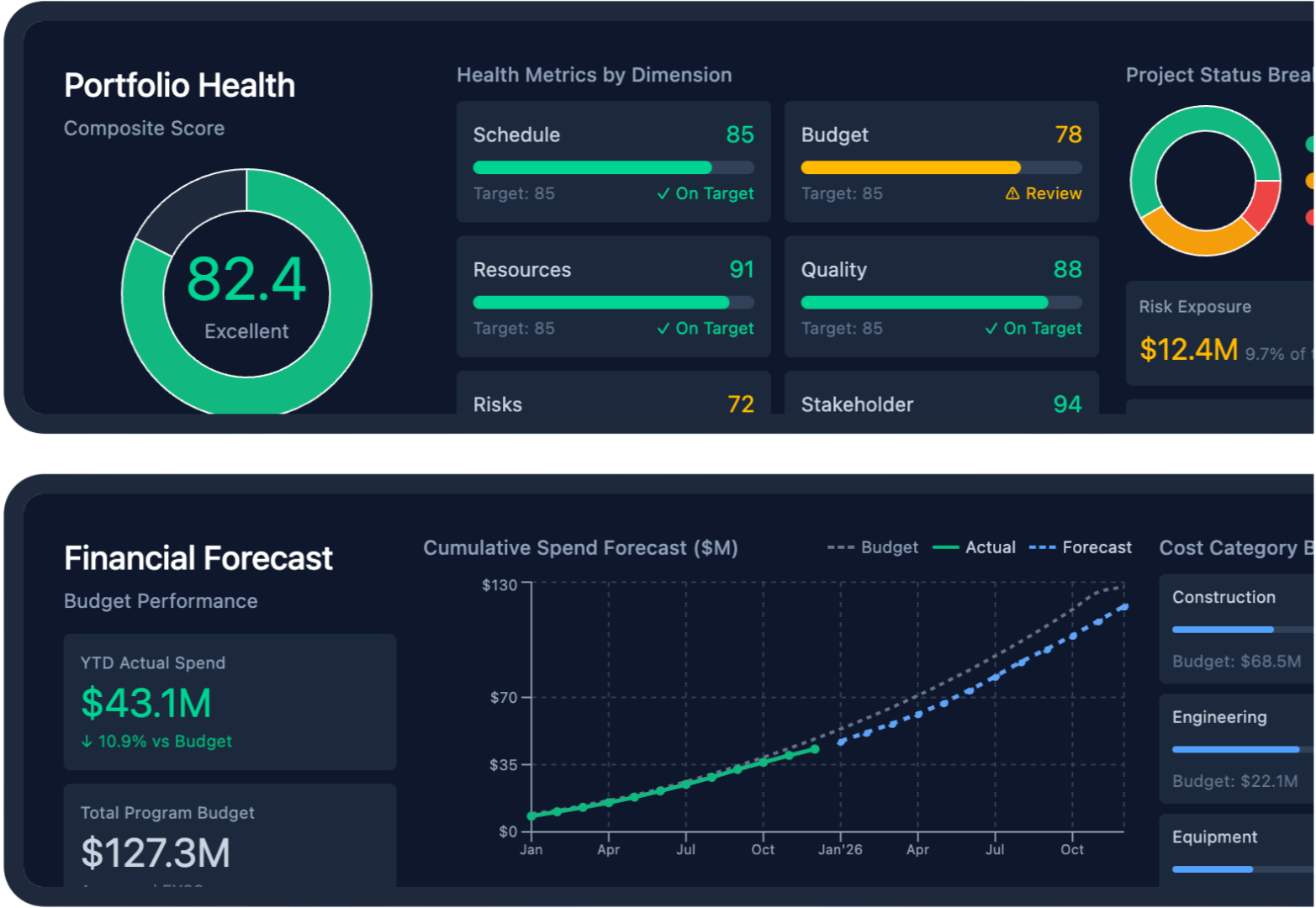Multi-project dashboards with drill-down capabilities for managing entire capital programs across hundreds of projects.